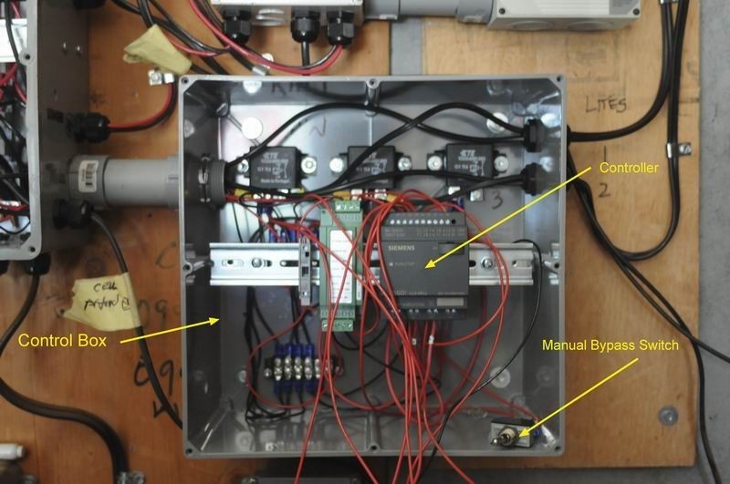 To automate our solar installations as much as possible, we equipped each of our installations with a Siemens programmable control (PLC) computer for which we developed a program to control lighting of the centers in the most effective way possible. Lights are prevented from operating during the daytime when the voltage is higher and shorten LED life, batteries are protected from overdischarge, and as the battery charge is drawn down at night, banks of lights begin to turn off to preserve some level of lighting as long as possible. Reserve is maintained for security lighting through the night.