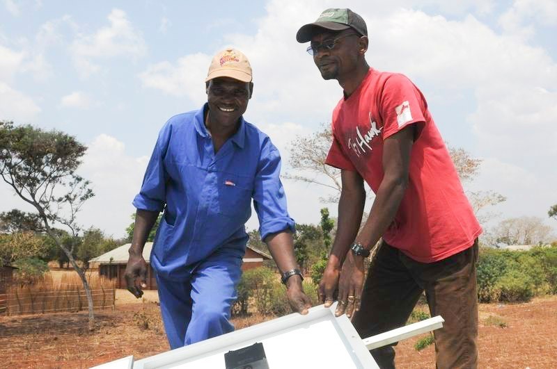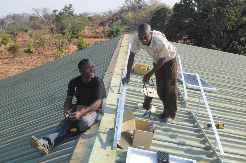 In Malawi, optimal solar radiation is obtained by mounting the panels facing due north, at an angle of approx 12 to 14 degrees. Depending upon the orientation of the center's roof line, panel mounting must be designed accordingly.